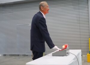 設備起動のボタンを押す清水社長