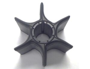 船外機の冷却水をエンジンに循環させるポンプ内に設置され、冷却水の流れをスムーズにする部品「インペラー」の形状設計に関する発明。インペラーの羽根を回転方向に湾曲させた形状にするとともに、羽根の根元部分のカーブを回転方向側と逆側とで非対称に設計とした。これにより、羽根が滑らかに動きやすくなり、特に破損しやすい根元部分へひずみが集中することを抑制している。同形状を用いることで、インペラーの耐久性が向上し、ポンプ性能を安定的に維持することが可能になった。同技術は、小型インペラーにも適用可能で、幅広いポンプ装置に活用されている。