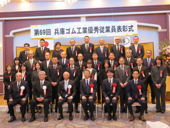 兵庫ゴム工業会(池田浩会長・三ツ星ベルト社長)と兵庫県ゴム工業協同組合(松岡泰生理事長・ナショナル護謨社長)は第69回兵庫ゴム工業優秀従業員表彰式を11月5日、神戸三宮東急REIホテル(兵庫県神戸市)で挙行した。
