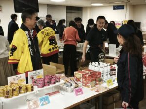 東日本大震災が発生した2011年から続けている活動で、今回が14回目。同社が事業所を設置する宮城県、岩手県の県職員の協力の下、地元に推薦してもらった銘菓やラーメンなど40品目の特産品を販売した。