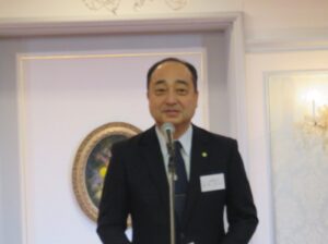 乾杯のあいさつをする植野バンドー化学社長