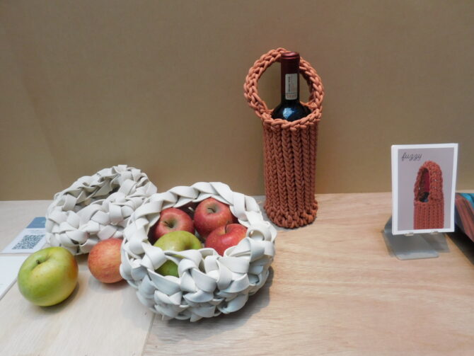 右川ゴム製造所は、本社所在地の埼玉県が実施している企業支援事業「TH?NK DES!GN/SAITAMA(シンクデザイン埼玉)」の採択企業として、同支援事業のブースに出展した。同社ではこの支援事業により、デザイナーとともに開発しデザイン性や使い勝手などを一層向上させた、一般消費者向けのBtoC商品として「fuzzy(ファジー)」ブランドを立ち上げた。今回は、ゴムを編み上げたバスケットなどを初披露し注目を集めた。