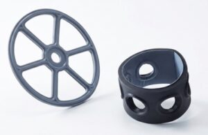 水電解装置の電極間において、気密性・絶縁性・電解液保持を担う重要部品。ガス混合や漏れ、短絡を防ぐことで水素製造効率と装置の安定運転に貢献する。樹脂フレーム一体型のシール構造により、膜交換が容易となるだけでなく、自動組付け作業の効率化や部品点数削減にも寄与する。さらにゴムシールの採用により、高圧環境下で漏れを抑制および従来の樹脂品に対して長寿命化を実現する。産業技術総合研究所(AIST)福島再生可能エネルギー研究所(FREA)との共同研究により材料・形状の最適化も進めており、水電解装置の効率的なエネルギー変換を支援する。