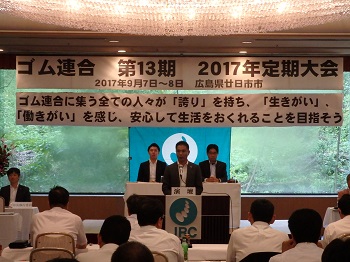 ゴム連合(春日部美則中央執行委員長)は9月7-8日の両日、広島県廿日市市の安芸グランドホテルで第13期2017年定期大会を開催した。今大会では、「ゴム連合に集う全ての人々が『誇り』を持ち、『生きがい』、『働きがい』を感じ、安心して生活をおくれることを目指そう」という理念のもと、13期目の方針が示され、執行部原案通り承認された。