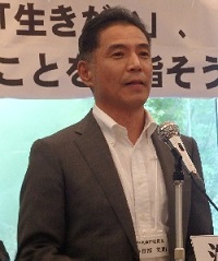 あいさつする春日部委員長