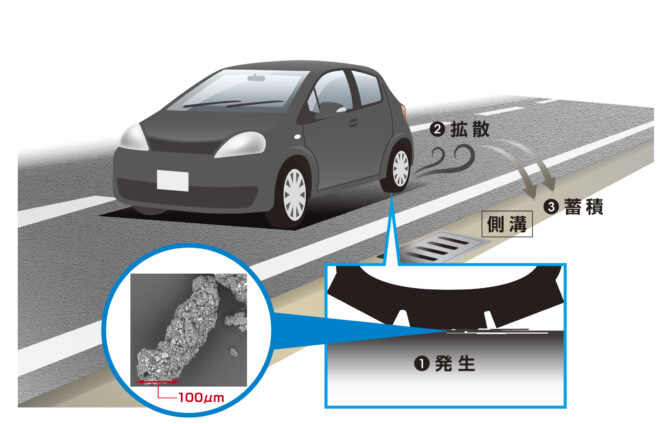 TRWPはマイクロプラスチックの一種として分類されることがある。しかし、その物理的・化学的性質や環境中での挙動には大きな違いがあると考えられている。同社は、京都大学大学院の田中周平准教授と共同で、TRWPとマイクロプラスチックを区別して定量分析する手法を開発し、環境中におけるTRWPおよびマイクロプラスチックの存在量の把握を進めている。また、TRWPの拡散や蓄積の予防・抑制に向けた基礎的な知見の確立にも取り組んでいる。