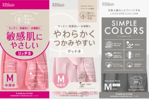 左から「樹から生まれた手袋シリーズの「リッチネ」、「グッドネ」、「シンプルカラーズ」