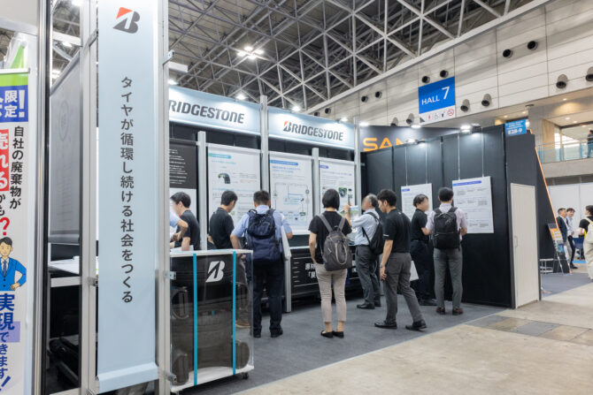 ブリヂストンは9月17~19日に幕張メッセで開催された「サーキュラーエコノミーEXPO」に出展し、タイヤ水平リサイクルの取り組みを紹介した。