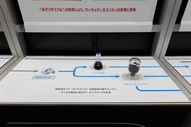 さらに東海カーボンと連携し、回収した再生カーボンブラックをタイヤ原材料へ再利用するなど、資源循環の社会実装を目指している。