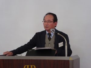 三島通弘事務局長の司会進行のもと、田井登支部長(ムツボシ副社長)が支部会の4月から12月までの活動報告と来年度の予定などを発表した。また「去年から今年にかけて大型台風が日本を襲い、各地で被害を受けている。昨年の台風21号では関西も大きな打撃を受け、私の自宅や会社も被害にあった。台風でも雨台風になると川が決壊して被害を与えたことから、その対策が進んでいると聞く。その対応のひとつに川の底をさらって深くすることや堤防を高くするなどの検討がされているようだ。これらの大型台風に備える方法として関東には首都圏外郭放水路という河川の洪水を地下に取り込む施設があり、これがトンネルを通して江戸川に放水するという機能を持ち、今回の雨台風に効果があったと言われている。実は大阪にも同じような施設で地下河川というものが南部・北部にある。これは地下にもう一本川を作るというもので、2043年に完成するという大きな工事が行われており、ゴム関連も部材で係わっている企業もいるかもしれない。都会には経済財産が蓄積しており、こういった対策がなされている」とあいさつに代えた。