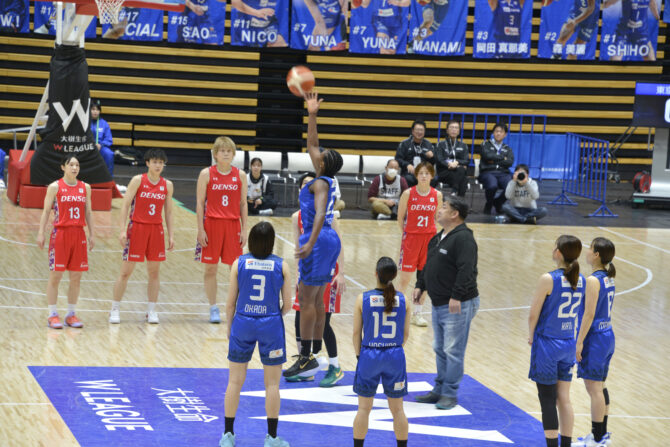 試合は45対72でデンソーが勝利。ヴィッキーズは前半に大きくリードを許したものの、後半には粘り強さを見せ、盛り返す場面もあった。